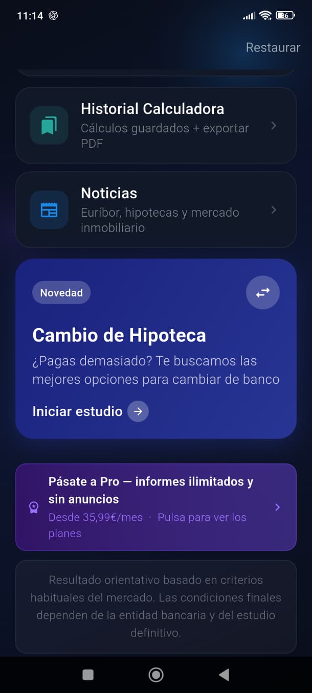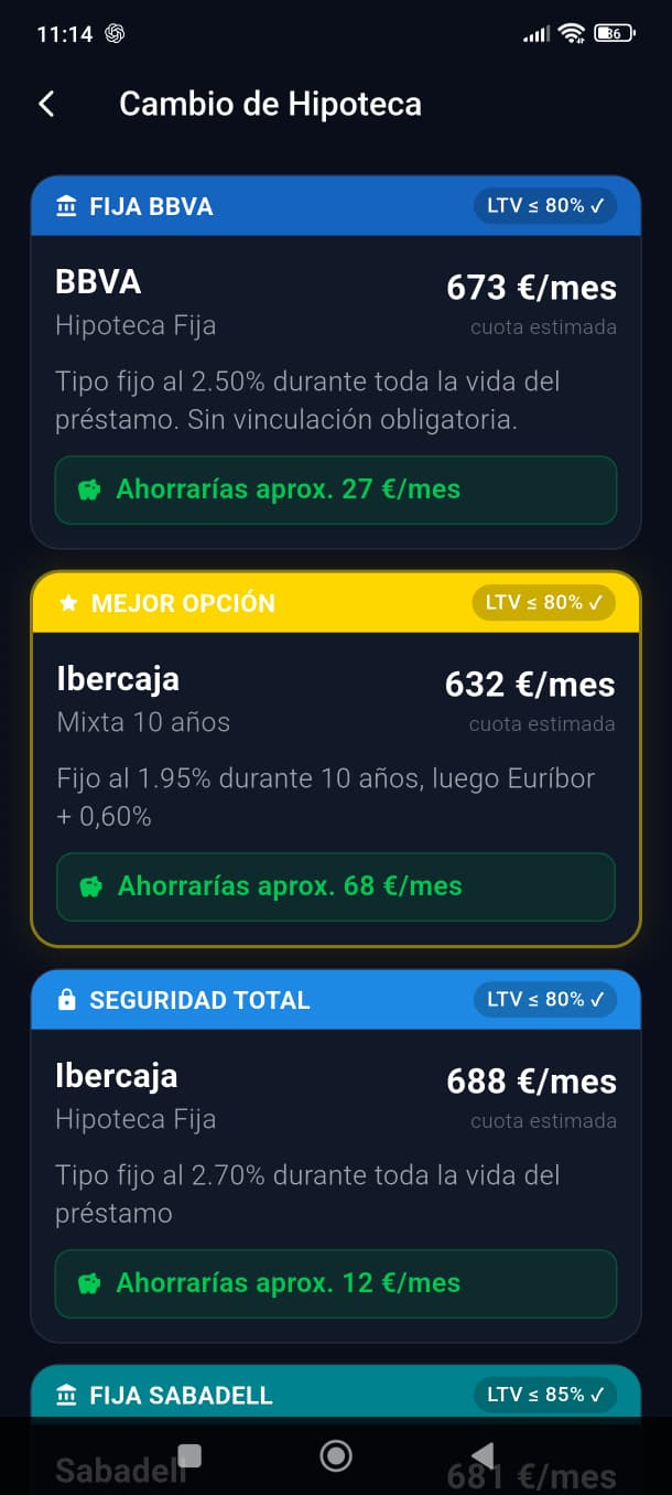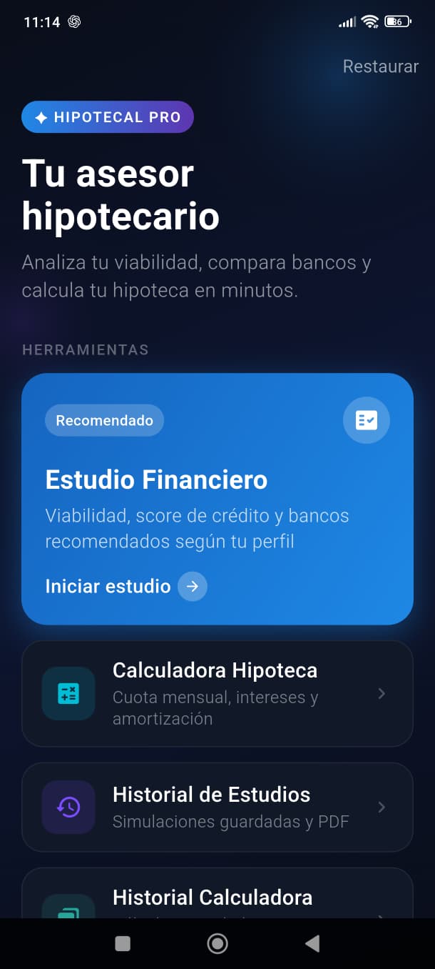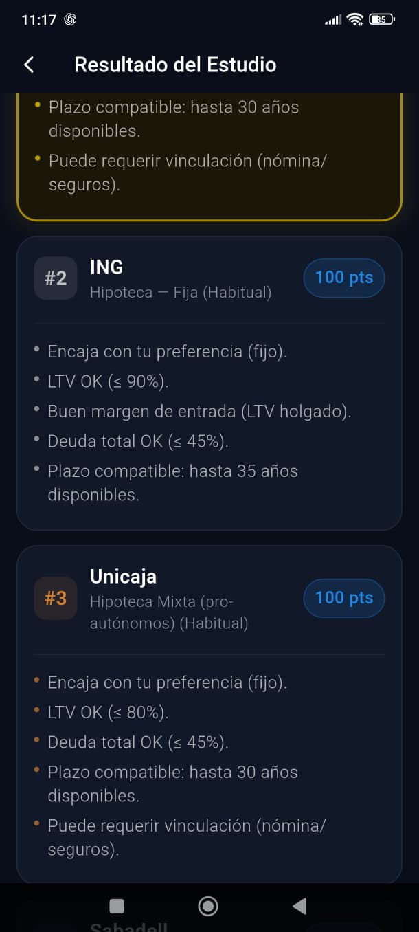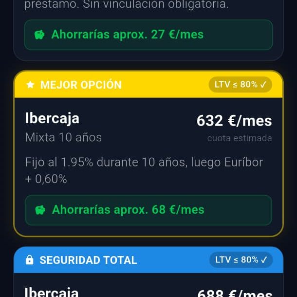 Hipotecal Pro analiza tu perfil financiero y te recomienda las entidades más adecuadas según tu situación real.